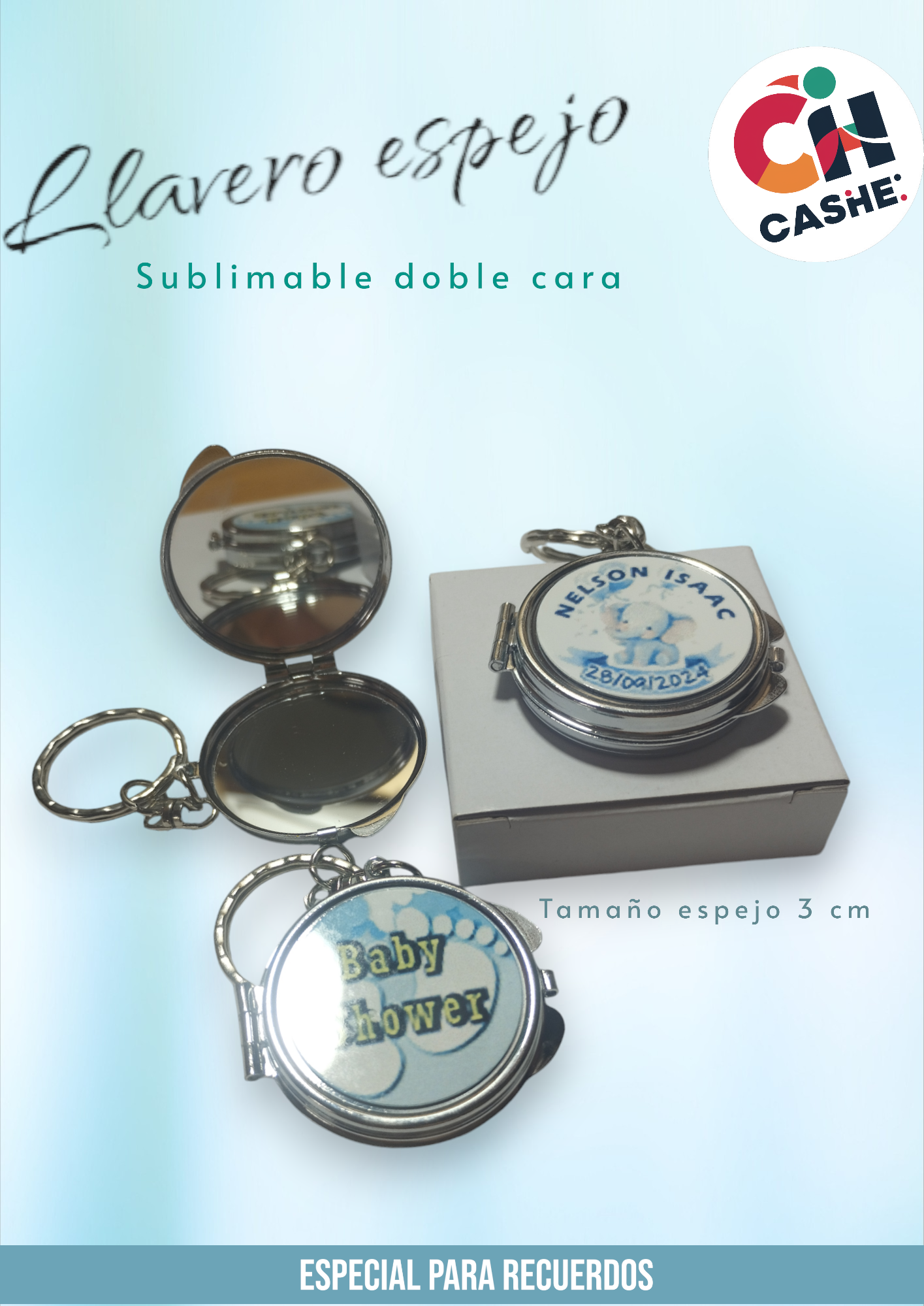 Llavero con espejo sublimable por ambos lados. Ideal para baby showers, eventos y recordatorios especiales.