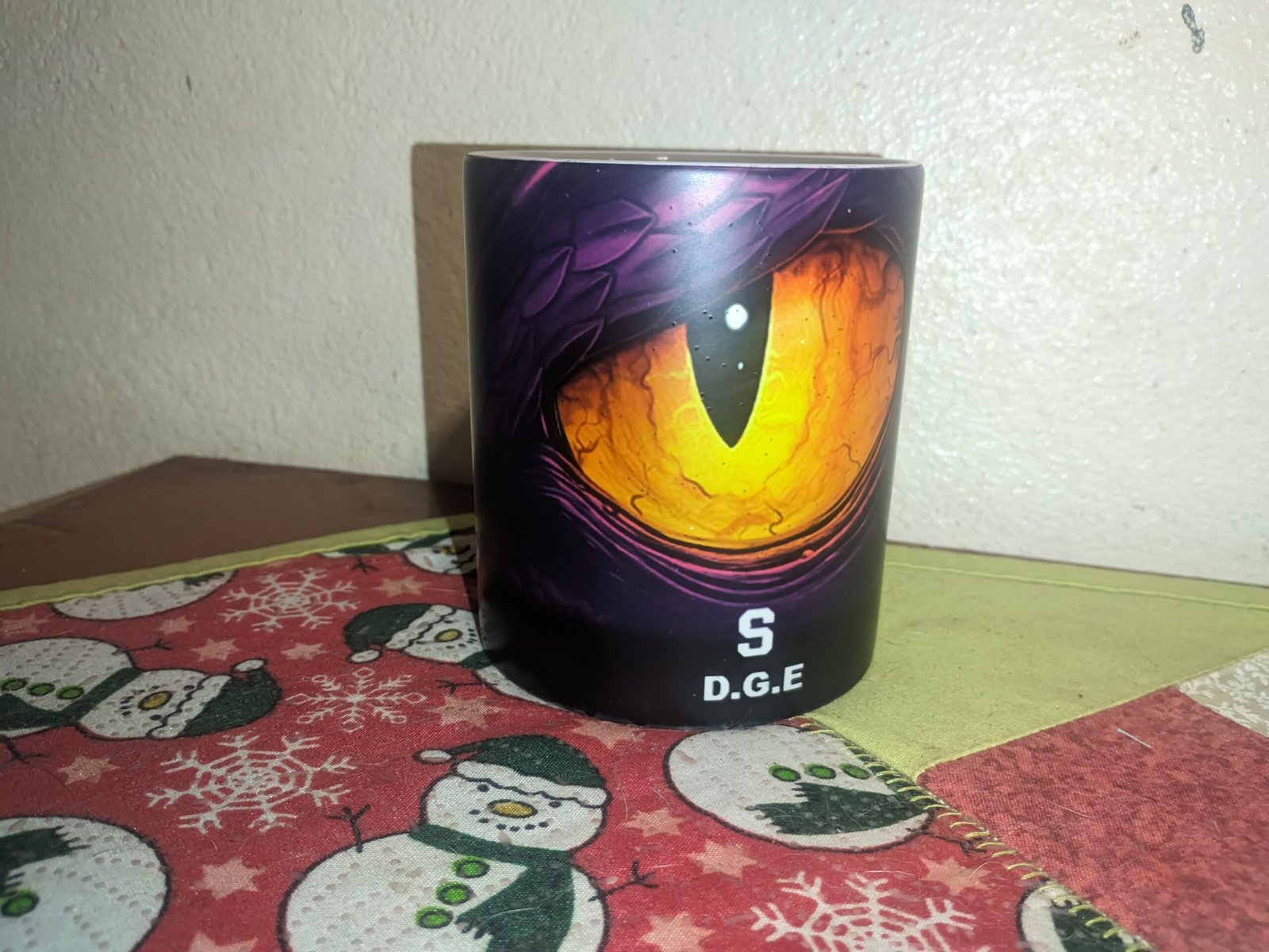 Personalizada para el Fan #1 Hazla única. El diseño incluye la «S» que nos representa y, justo debajo, puedes agregar tu nombre, apellido o iniciales (como se ve en el ejemplo «D.G.E»). Es el detalle perfecto para que nadie toque tu taza en la oficina o en casa.